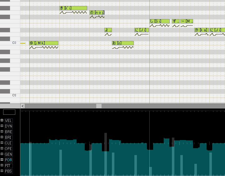 ポルタメントの開始位置を調整するものらしいんですが、私は音と音の繋がりを調整したときにこのパラメータを弄ります。実際に弄るとこんな感じ↓