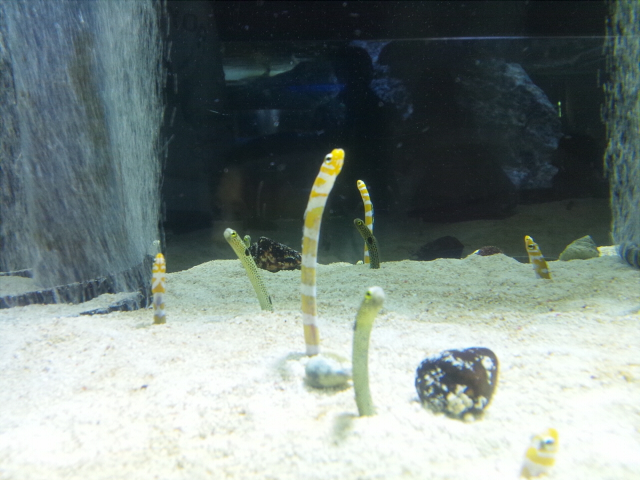 ちょっと話題になってたチンアナゴさんがこちら。みんなひょこひょこ顔出してかわいかったですねw