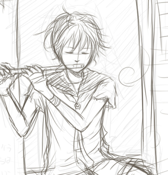 笛がいっぱい出てくる曲にしたかったので、とりあえずレンに笛らしきものを持たせてみたり。