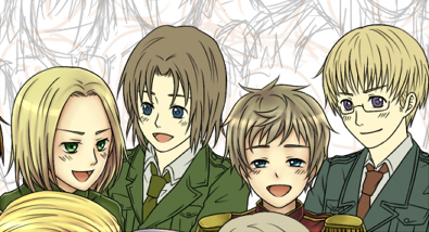 絵は只今色塗り中のバルト三国+ポーランドですw凸凹トリオなので身長差を出すのが難しかったです。
