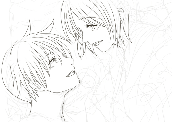 今描いてるリンレン年賀状の途中絵です。描いてていまいちどういう構図か把握してないんですが割りといい感じに進んでますw