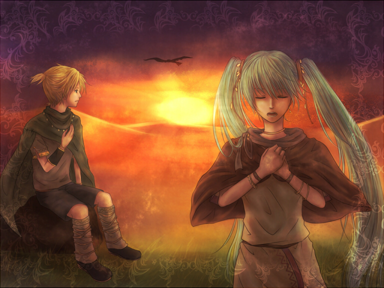 ということで、イラスト完成しました。レンとミクという珍しい組み合わせです^^