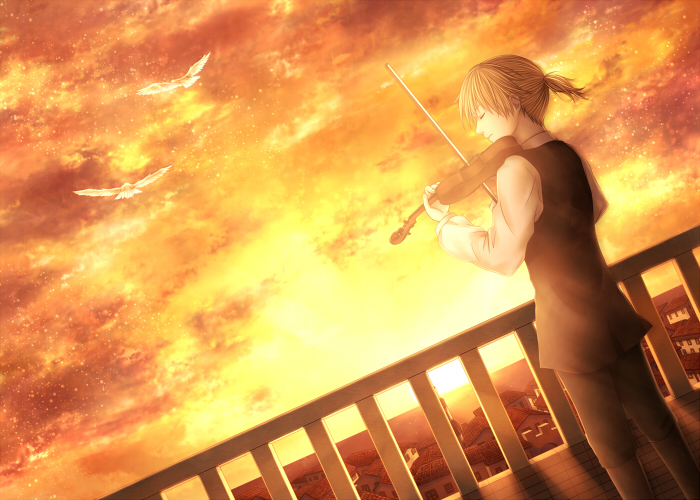 コラボ完成以来1年半ぐらい夕日さんの絵描いてなかったので、久しぶりにバイオリンやら背景やらを描いたら結構大変でした(;´∀`)