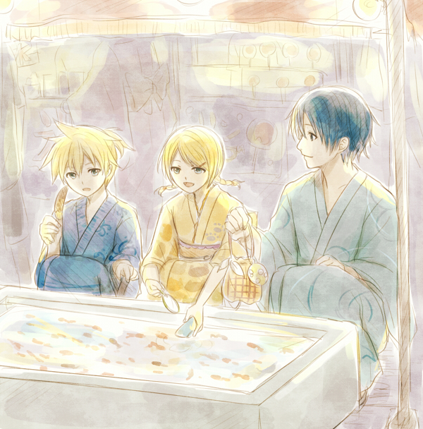 そんな感じでお祭で金魚すくいとかかわいいと思って描いてみました(・∀・)ちゃんと付き添いやってる兄さんが理想の兄さんって感じで私も一緒にお祭行きたいですw